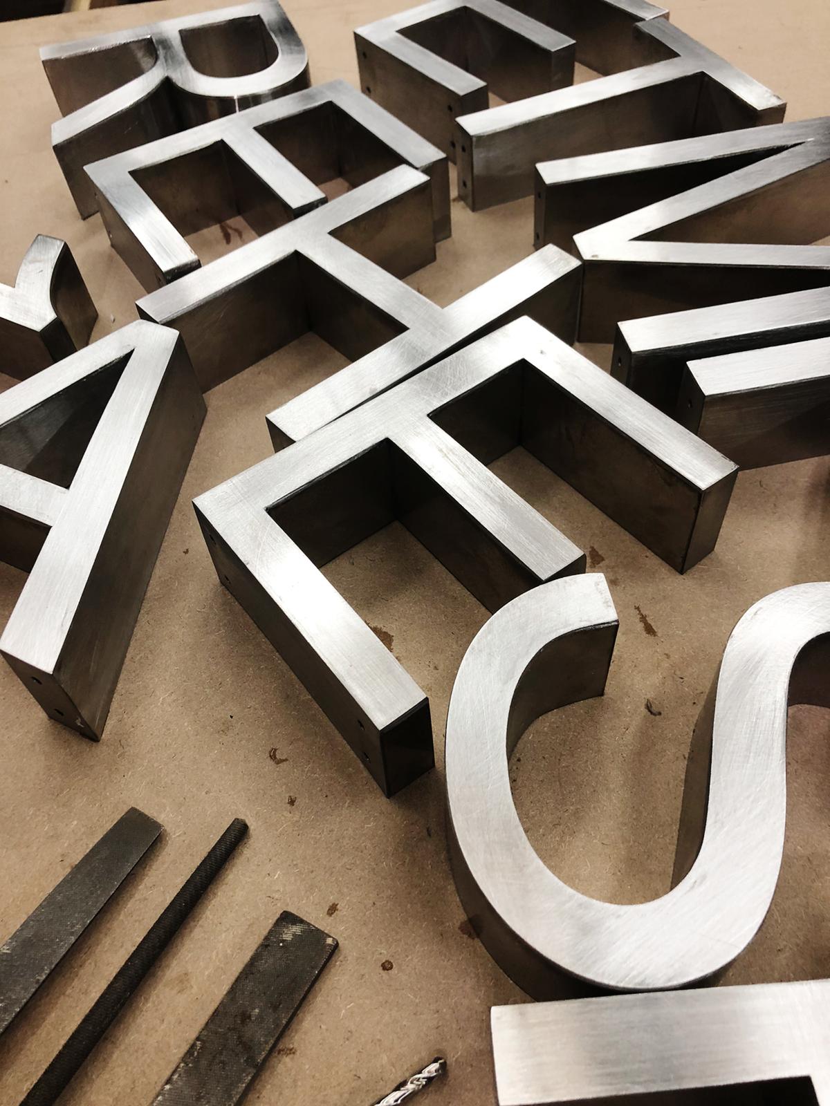 Aluminum and stainless steel are the most common material used to produce built-up letters. Your size and finish specifications will decide which metal is being used but don’t worry, as specified, we’ll advise you on the best choice for your project.